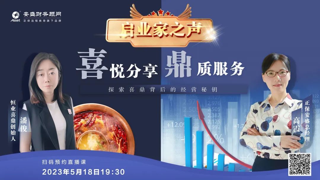 5月18日19:30,安盛推出《啟業(yè)家之聲》第一期,由安盛總經(jīng)理高霞女士和“喜鼎連鎖火鍋”品牌創(chuàng)始人潘俊女士親臨對話,帶來《喜悅分享 鼎質(zhì)服務(wù),探索喜鼎背后的經(jīng)營秘鑰》主題訪談。本次直播采用訪談對話的形式,讓大家在輕松的聊天中了解喜鼎的制勝法寶,在經(jīng)驗交流中學(xué)習(xí)企業(yè)的經(jīng)營之法,在全程多輪抽獎中感受活動的喜悅和熱情,活動得到大家的一致好評。